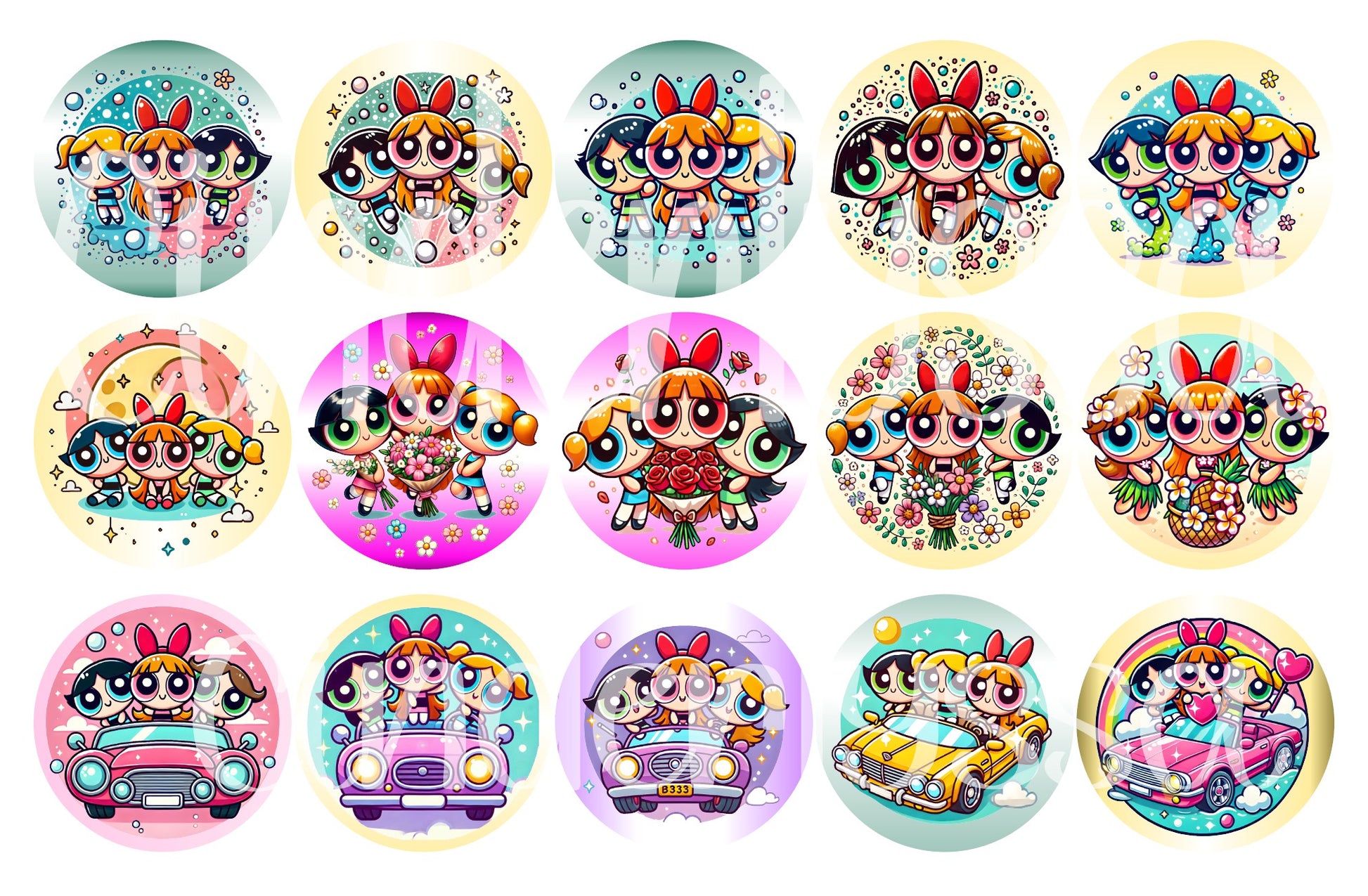 3.75 inch Round: Powerpuff Girls Mix for Cardstock Silicone Mold, for Aroma Bead Molds, Premium Cardstock Images
