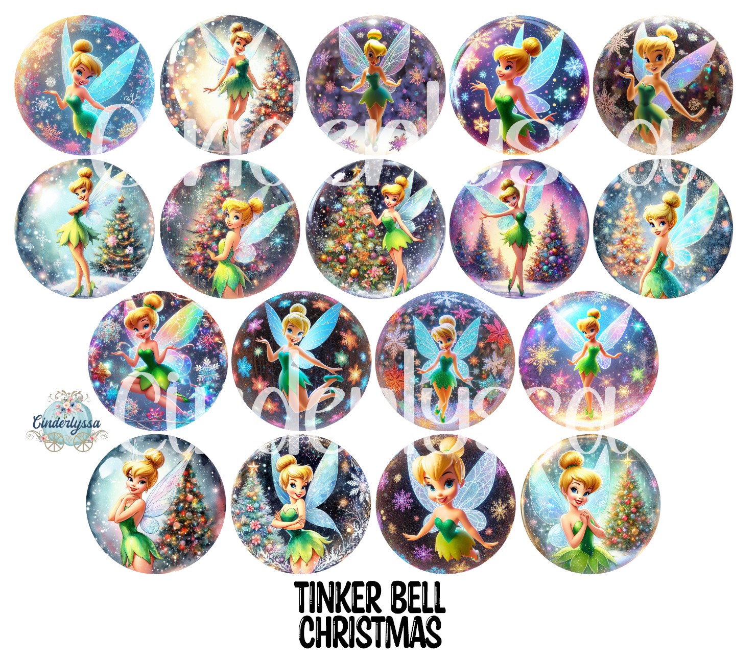 3.75 inch Round: Tinker Bell Christmas for Cardstock Silicone Mold, for Aroma Bead Molds, Premium Cardstock Images