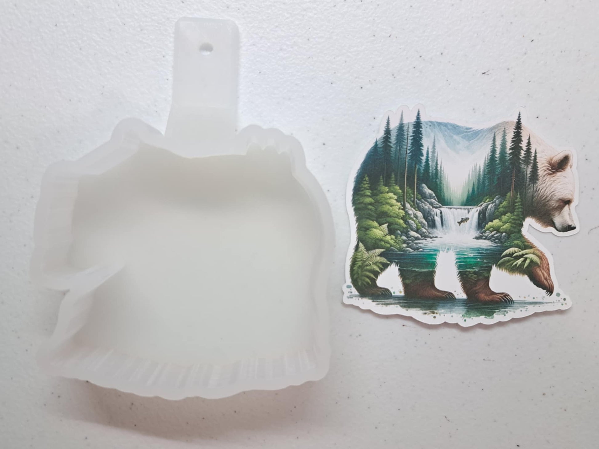 Bear Watercolor cardstock silicone mold is 1 inch deep and heat resistant up to 400°. Mold size interior is approximately 3.68 inches tall and 4.0 inches wide.