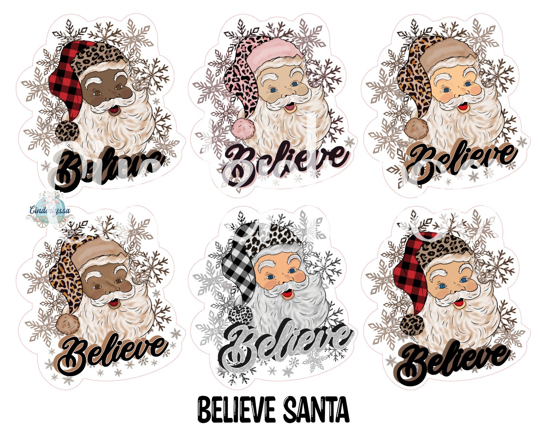 Believe Santa: Multiple Images with Leopard/Buffalo Plaid and Snowflakes Cardstock Silicone Mold, Aroma Bead Molds