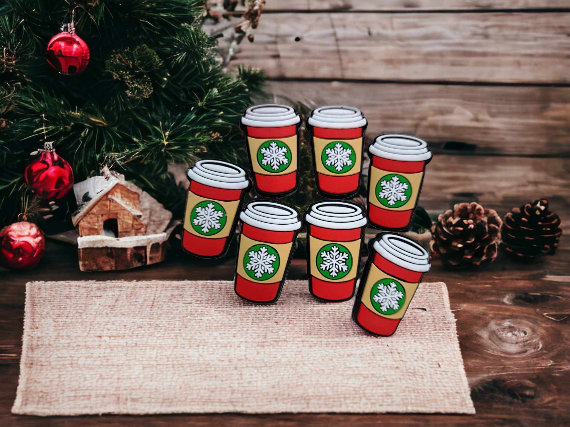 This listing is for: Red To-Go Cup with Snowflake Silicone Focal Bead - 0370