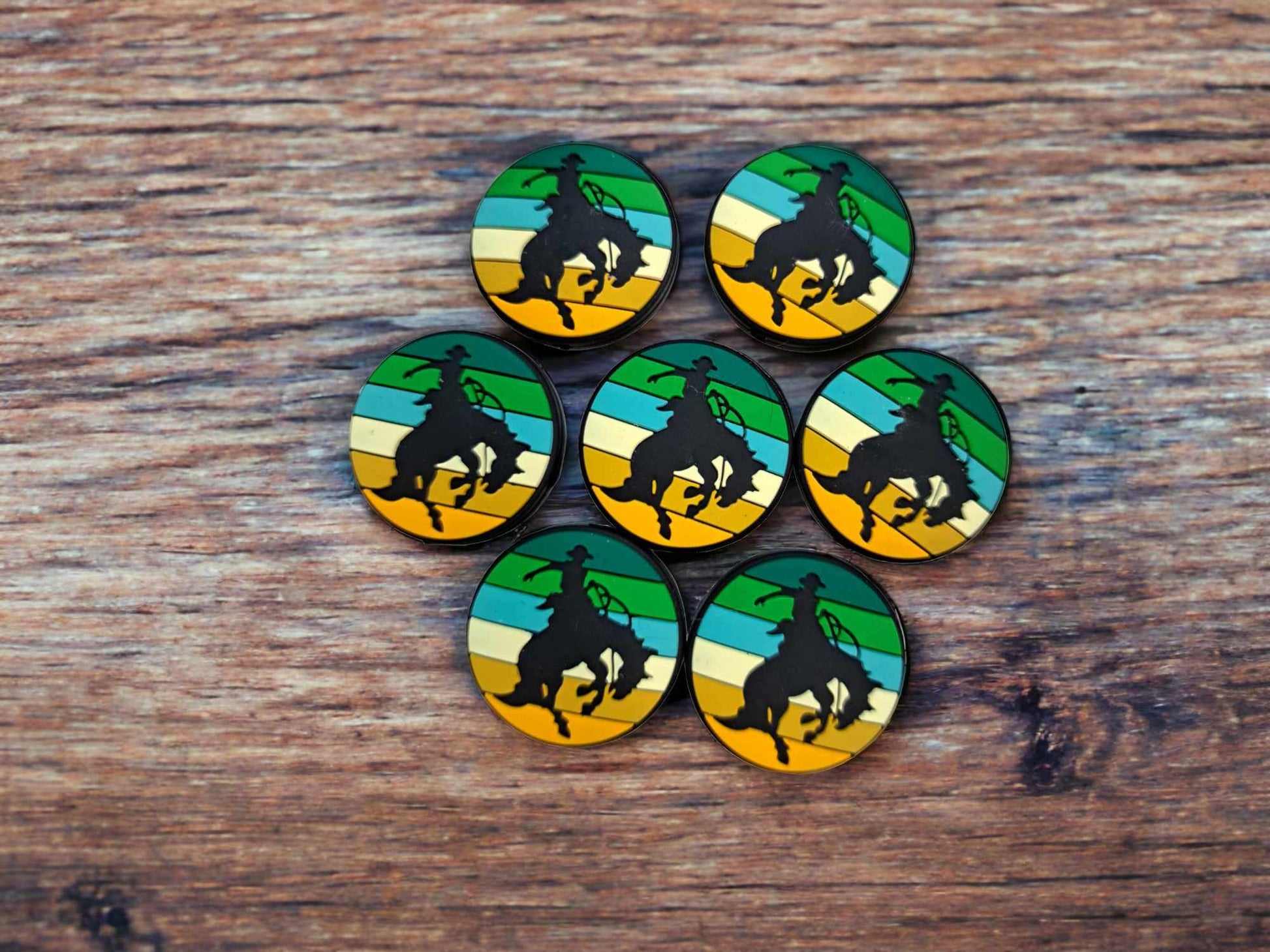 This listing is for: Cowboy on Horse Rodeo Round Silicone Focal Bead - 0374