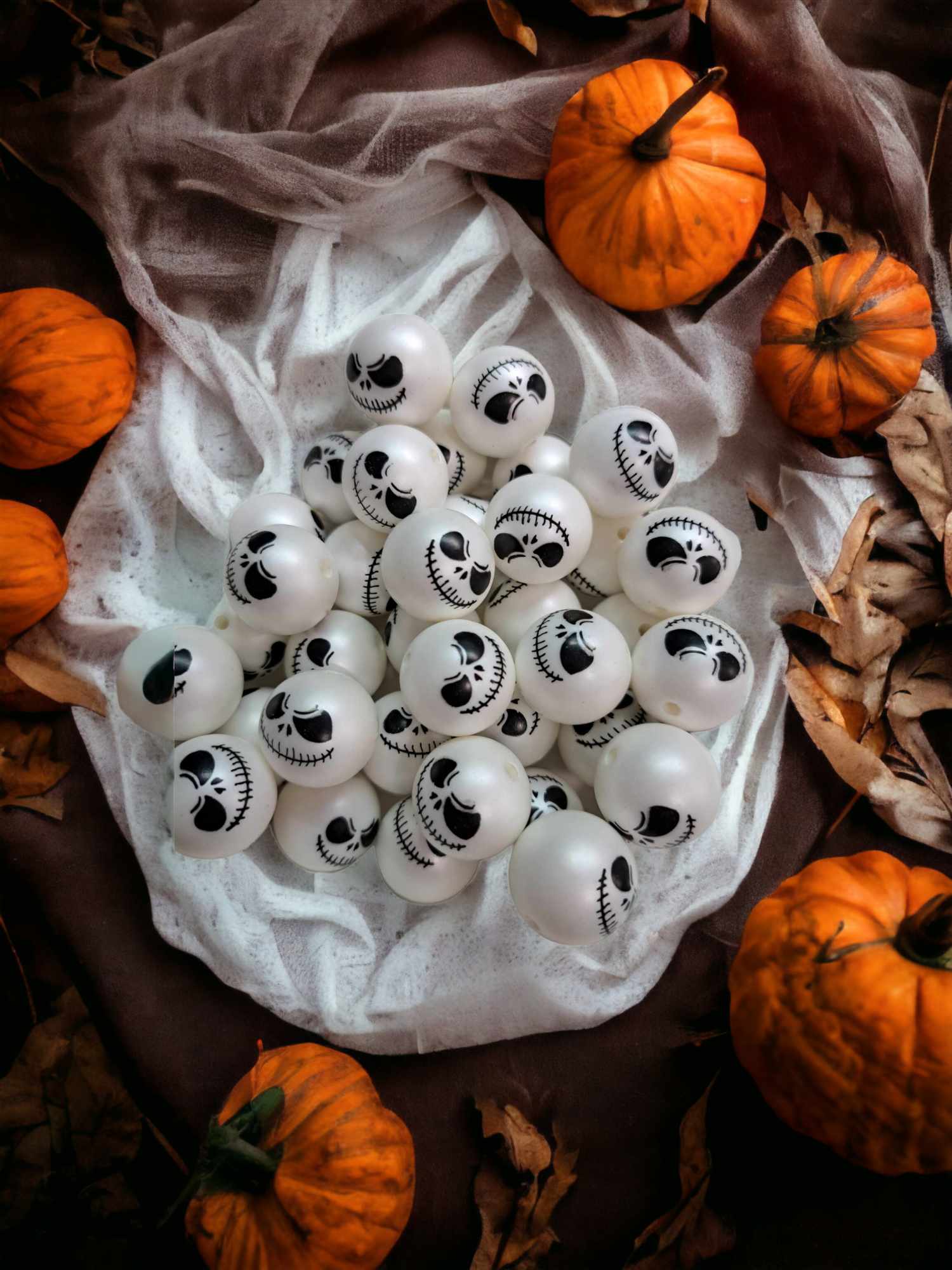 This listing is for: Nightmare Jack Face 20mm White Acrylic Bubblegum Bead - 1072
