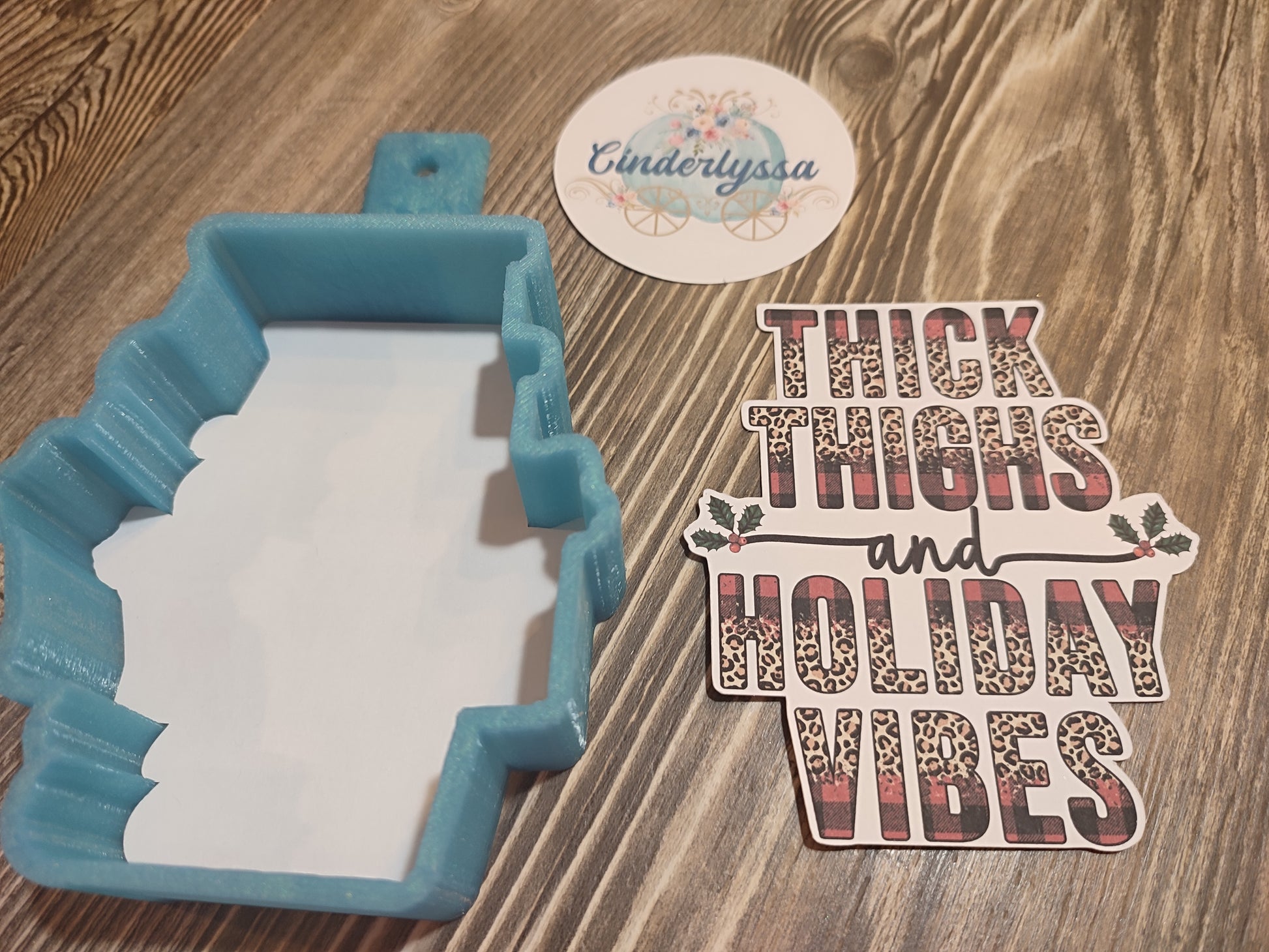 Thick Thighs and Holiday Vibes Large Christmas cardstock silicone mold is 1 inch deep and heat resistant up to 400°. Mold size interior is approximately 4 inches tall and 3.5 inches wide.