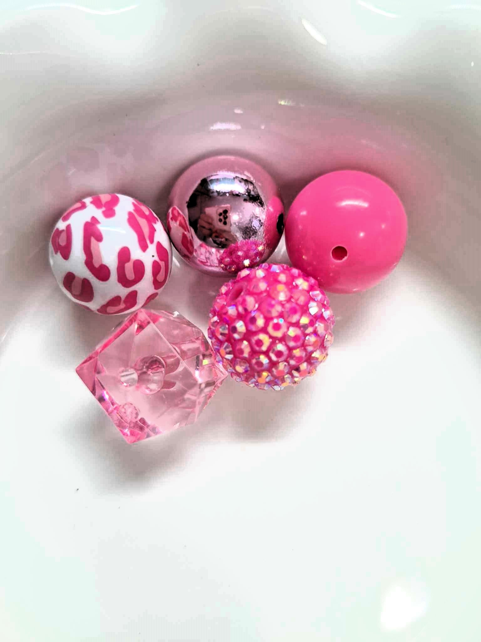 This listing is for: Pink Leopard Chunky Mix (5 Piece Mix) - 20mm Acrylic Bubblegum Beads - 1079