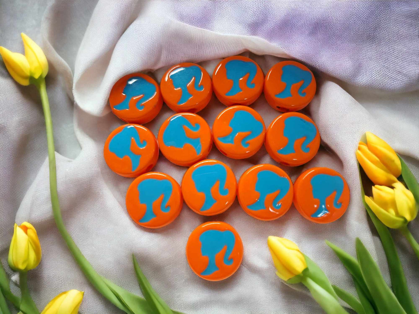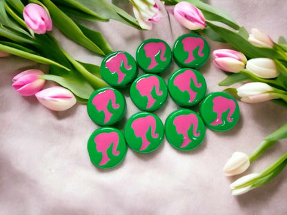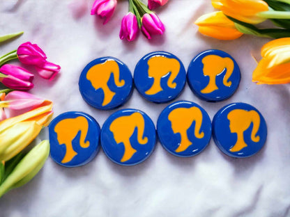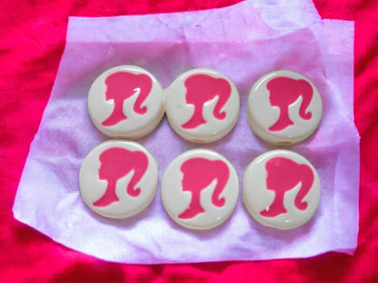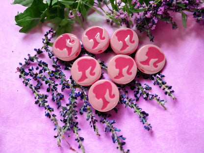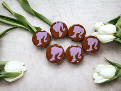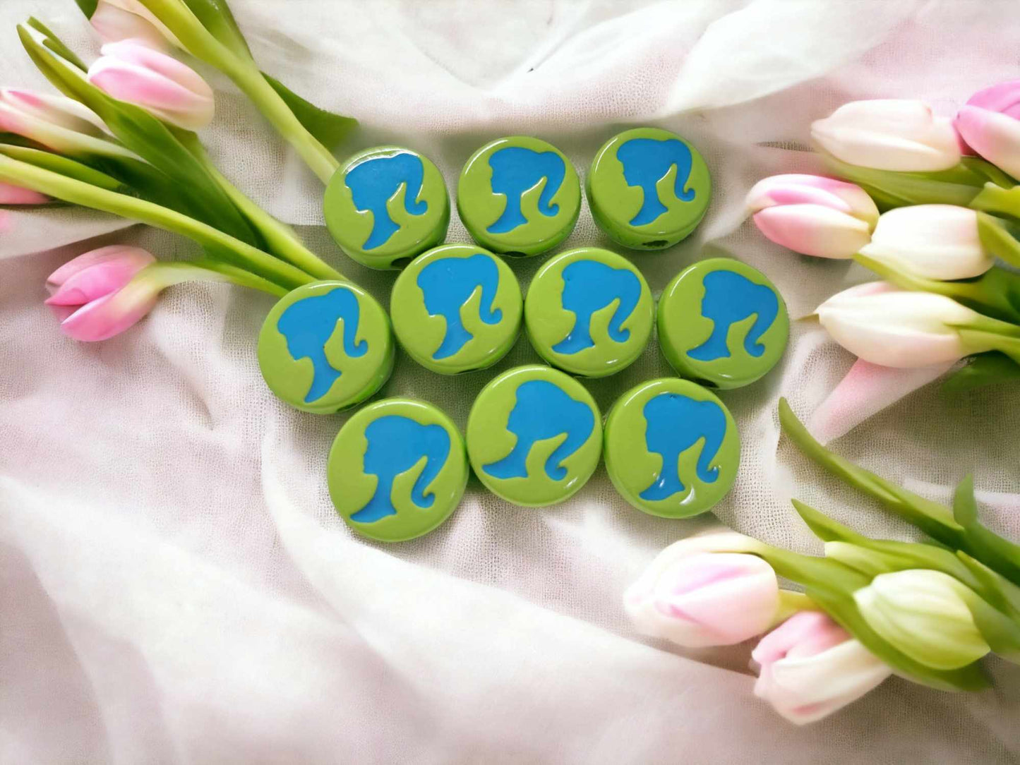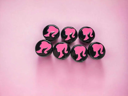 This listing is for: Circle with Barbie Silhouette - Round Acrylic Focal Bead - 0268
