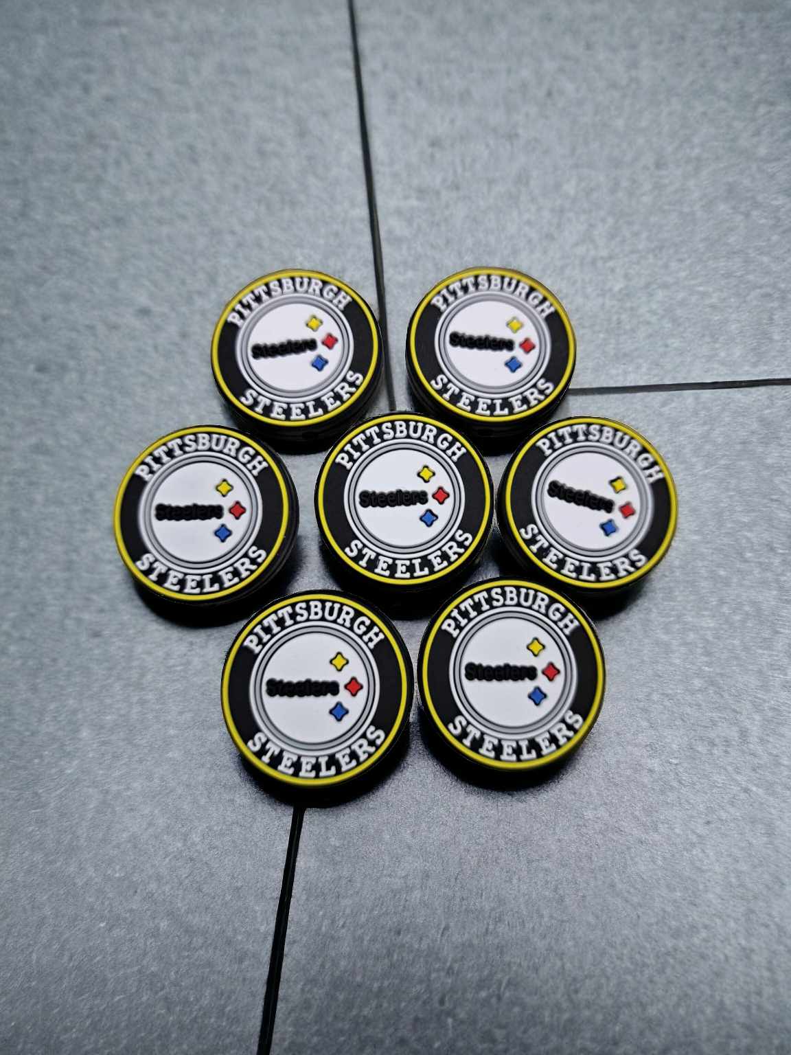 This listing is for: Pittsburgh Steelers Round Black Football Logo Silicone Focal Bead - 0589