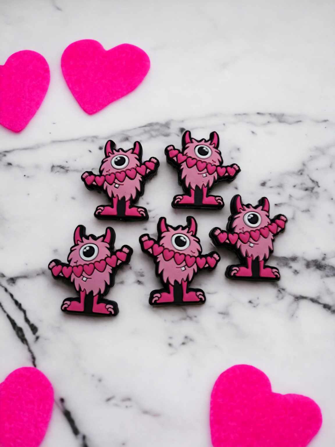 This listing is for: Pink Monster with Heart Banner Silicone Focal Bead - 0569