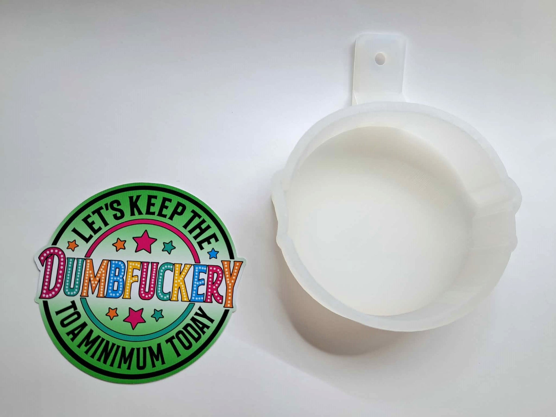Dumbfuckery To A Minimum cardstock silicone mold is 1 inch deep and heat resistant up to 400°. Mold size interior is approximately 3.6 inches tall and 3.9 inches wide.