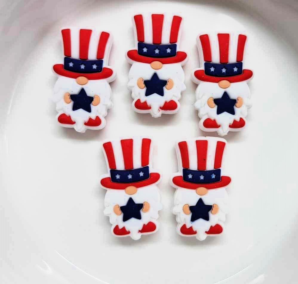 This listing is for: America/USA Flag Gnome holding Blue Star Full Body Silicone Focal Bead - 1306