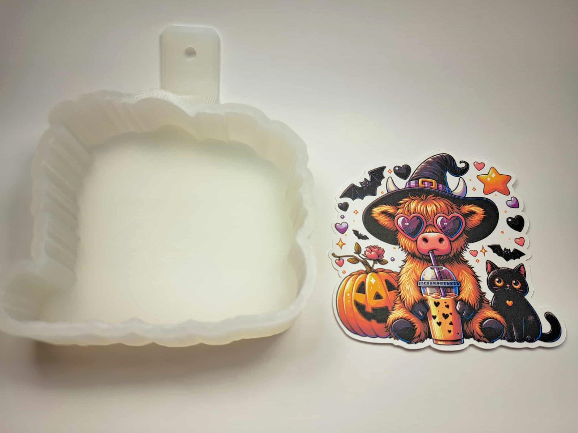 Halloween Witchy Highland Cow Cardstock Silicone Mold, Aroma Bead Molds, Premium Cardstock Images