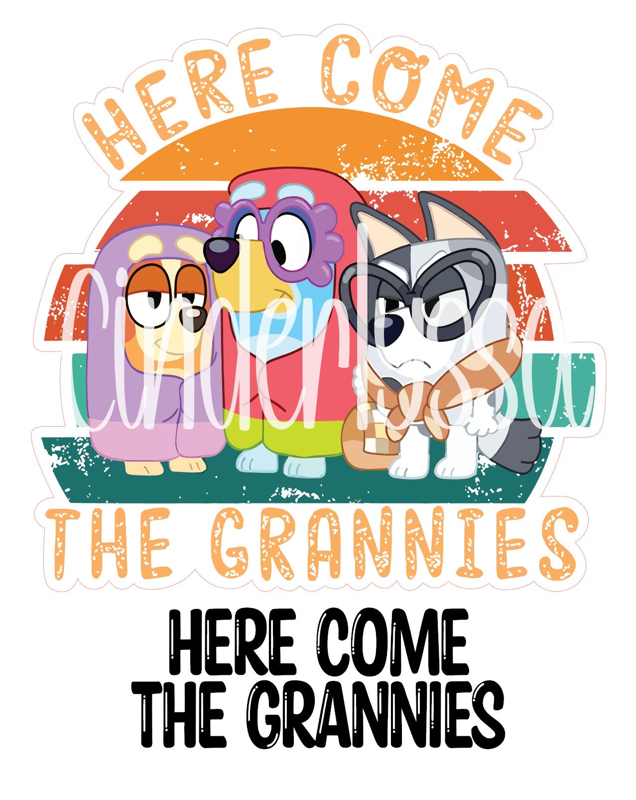Here Comes the Grannies: Bluey - Gladys, Rita, and Janet Cardstock Silicone Mold, Aroma Bead Molds, Premium Cardstock Images