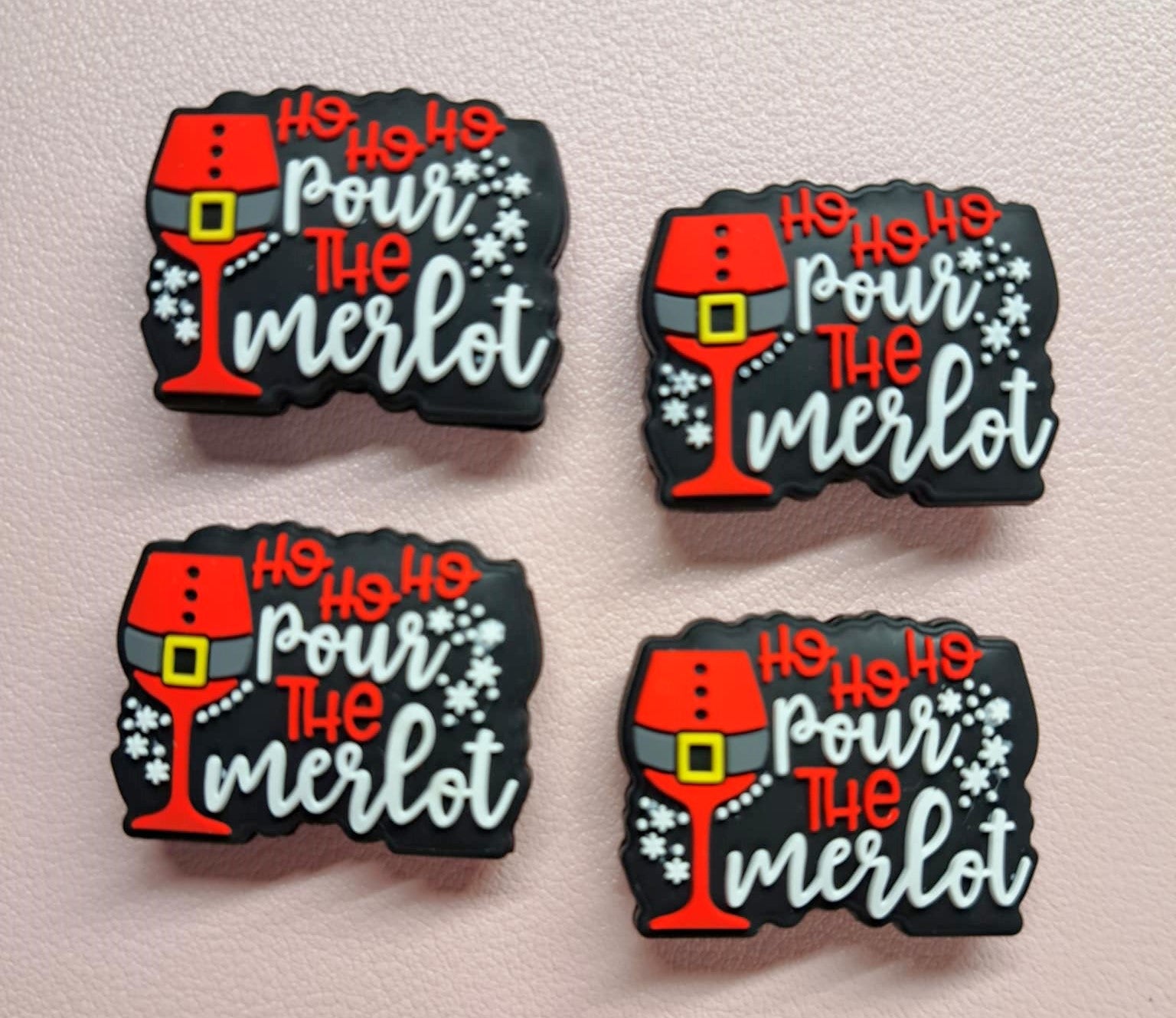 This listing is for: Ho Ho Ho Pour The Merlot - Santa Wine Glass (Christmas) Silicone Focal Bead