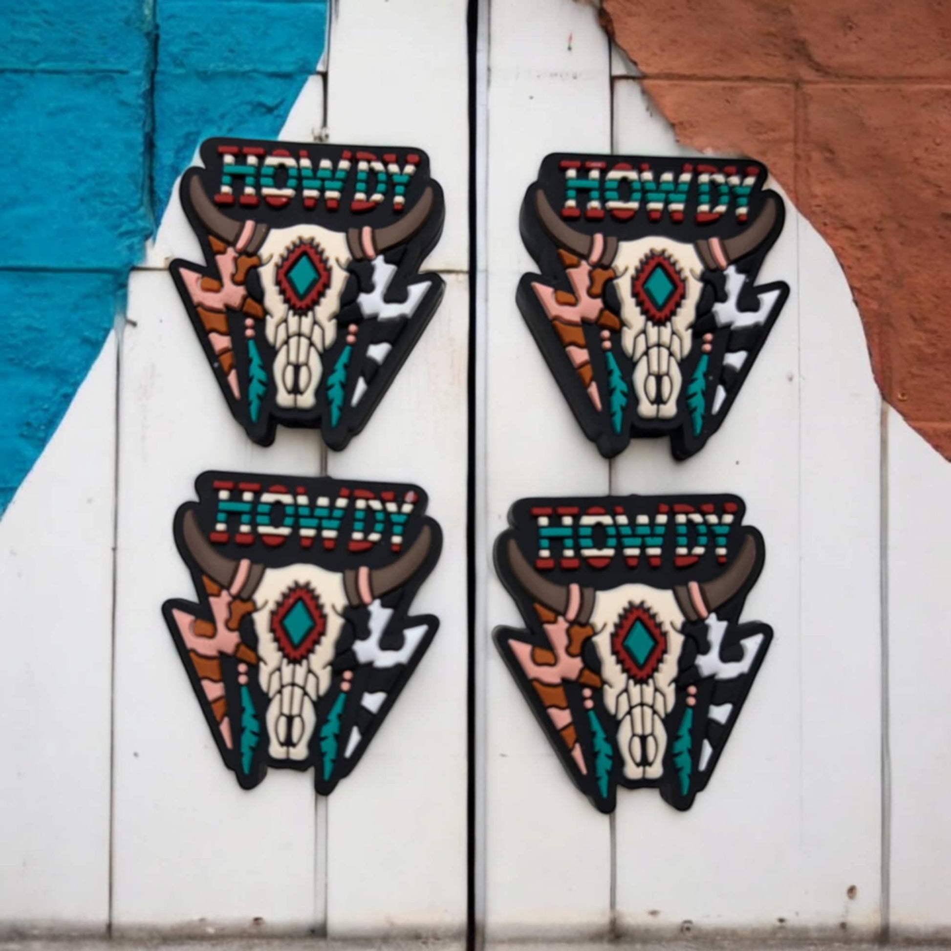 Howdy: Bull Skull with Lightning Bolts/Feathers Silicone Focal Bead
