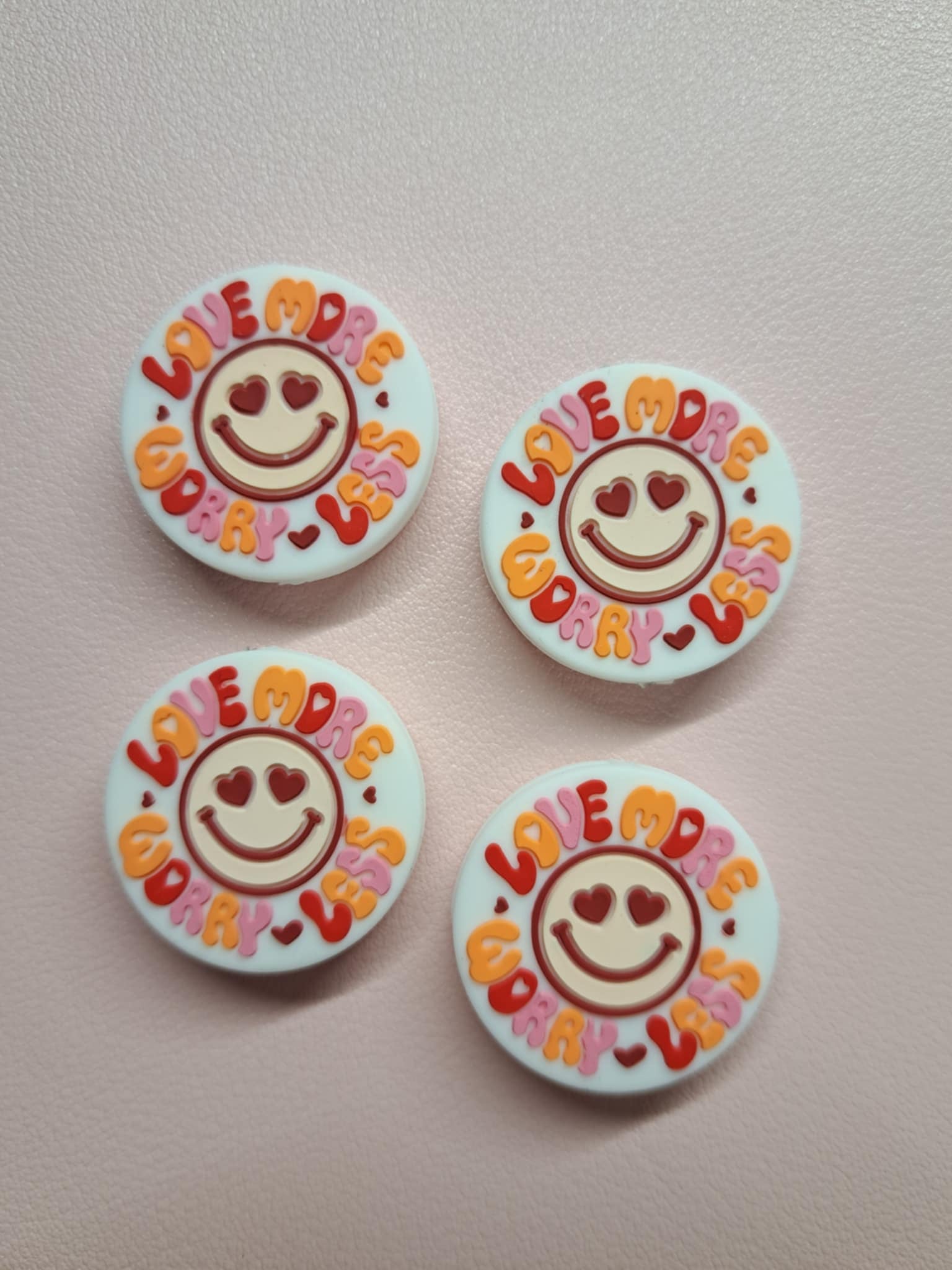 This listing is for: Love More Worry Less: Smiley Face Silicone Focal Bead