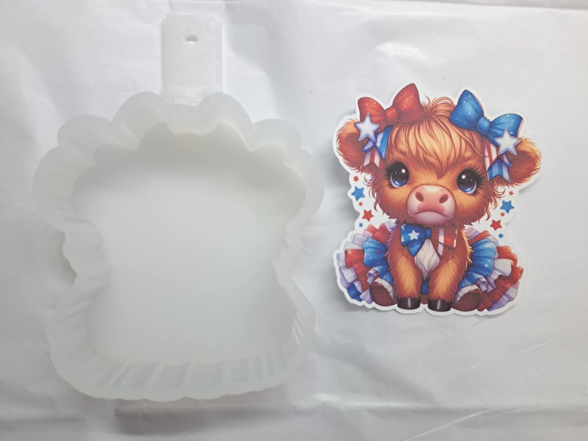 July 4th Red White Blue Highland Cow Girl: American Flag Cardstock Silicone Mold, Aroma Bead Molds, Premium Cardstock Images