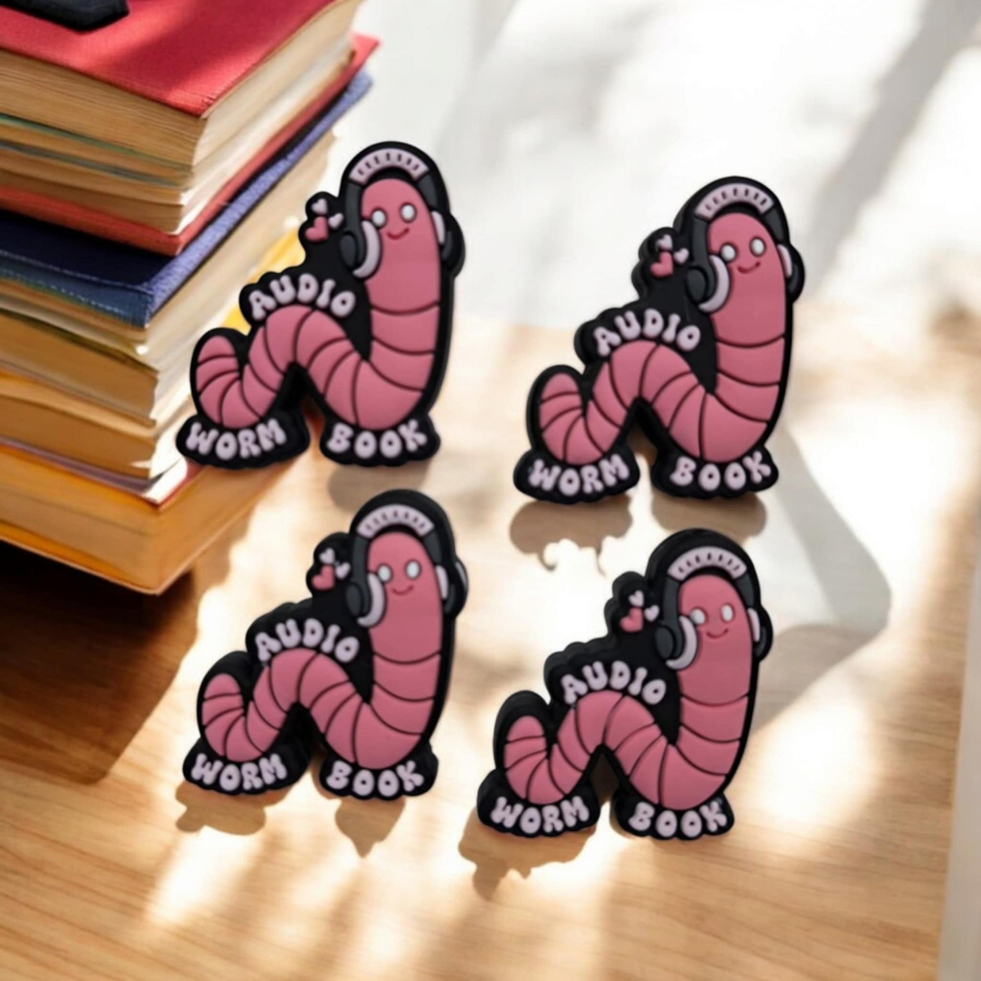 This listing is for: Audio Book Worm Pink With Headphones Silicone Focal Bead