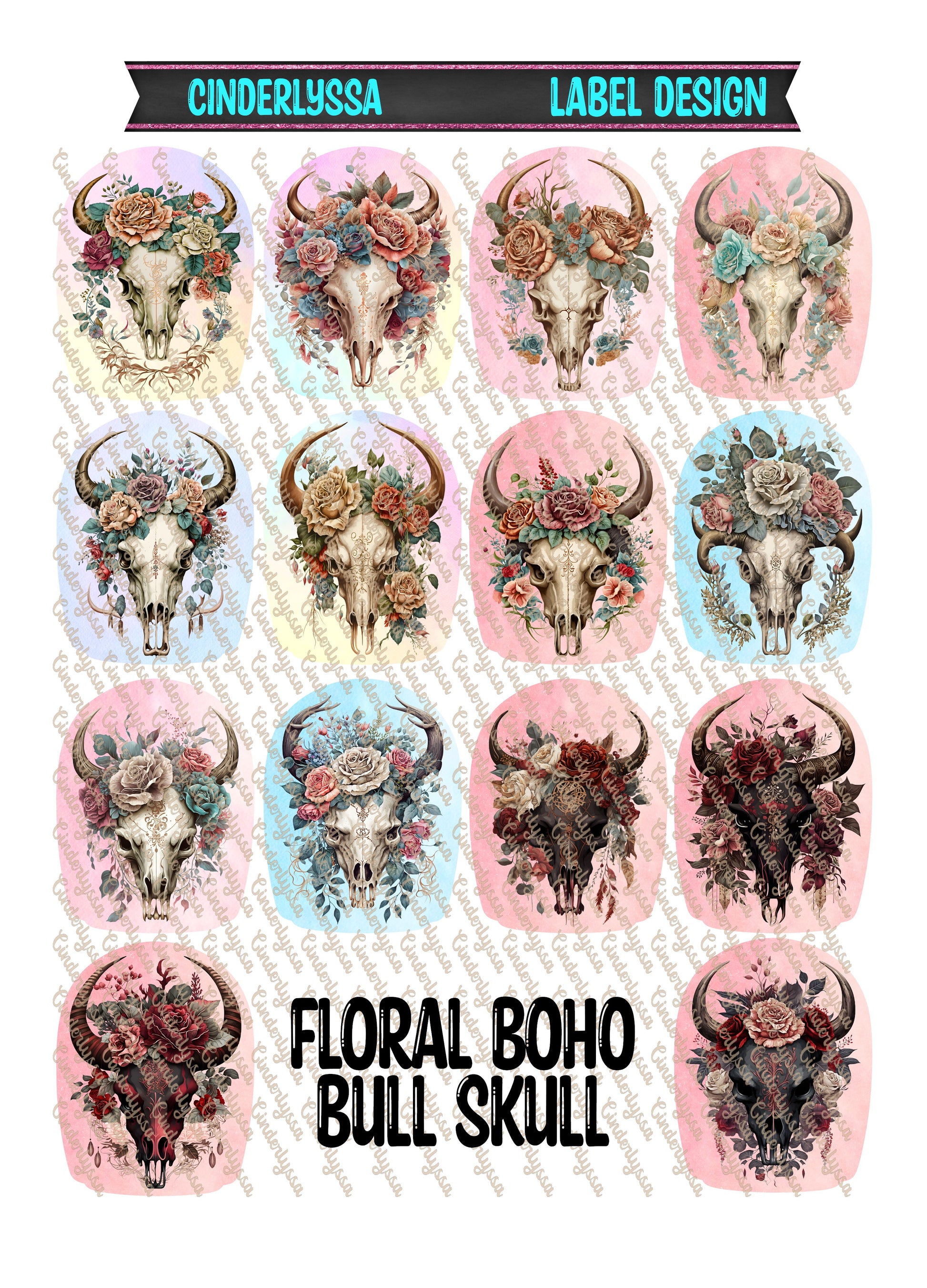 Label Design: Floral Boho Bull Skull Cardstock Silicone Mold, Aroma Bead Molds, Car Freshies, Premium Cardstock Images