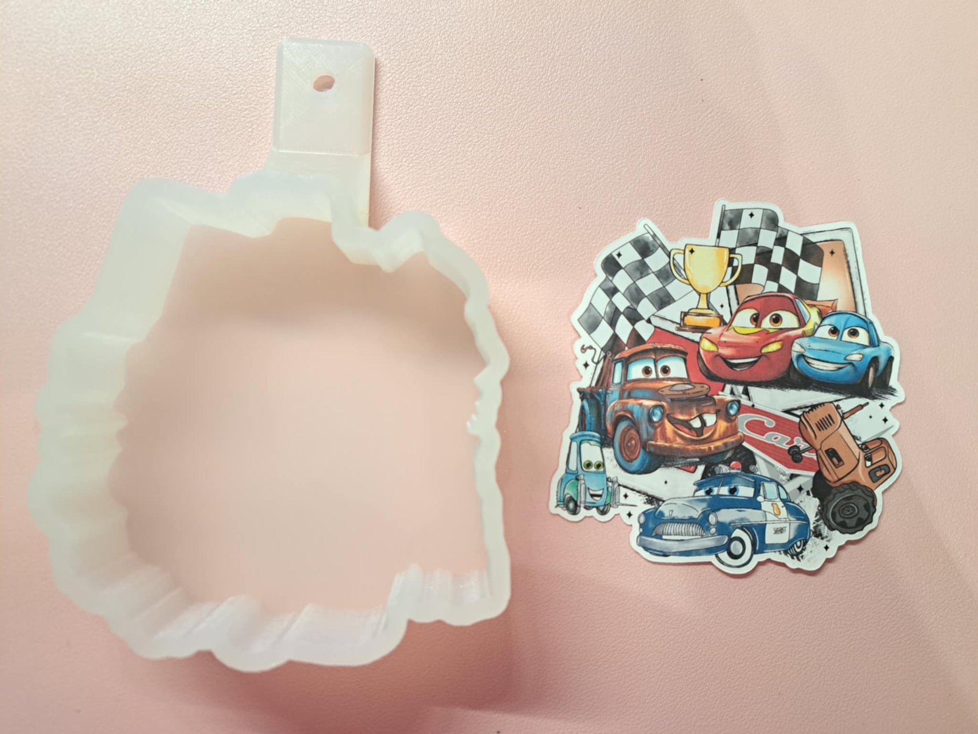Cars Collage for cardstock silicone mold is 1 inch deep and heat resistant up to 400°. Mold size interior is approximately 3.95 inches tall and 3.7 inches wide.