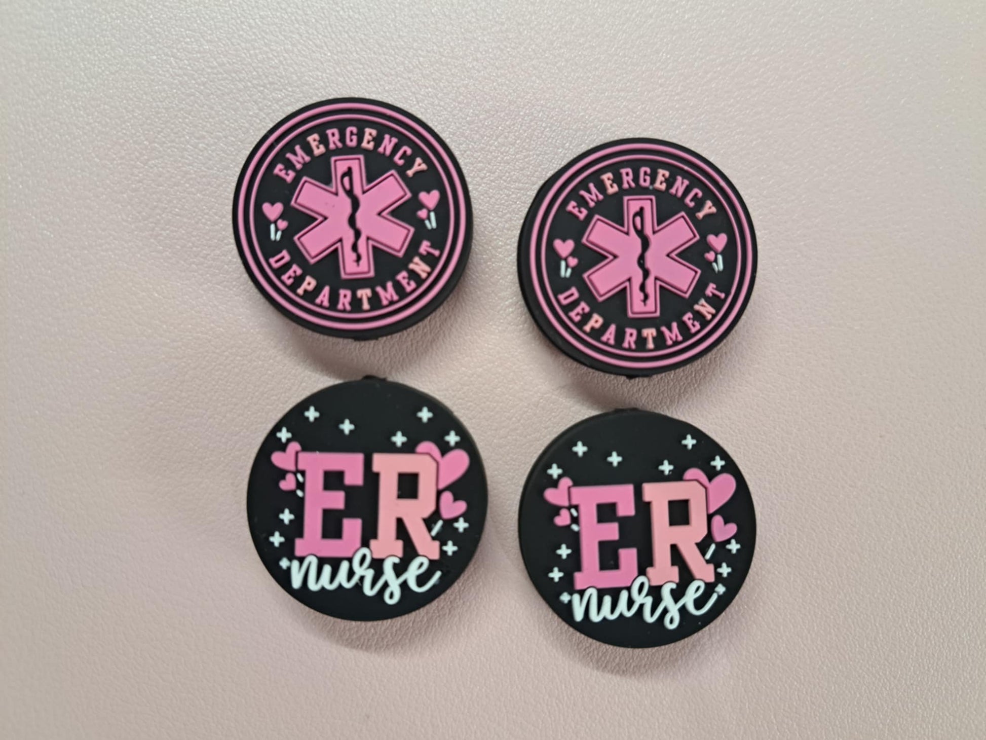 This listing is for Emergency Department/ER Nurse in Pink Round on Black Silicone Focal Bead