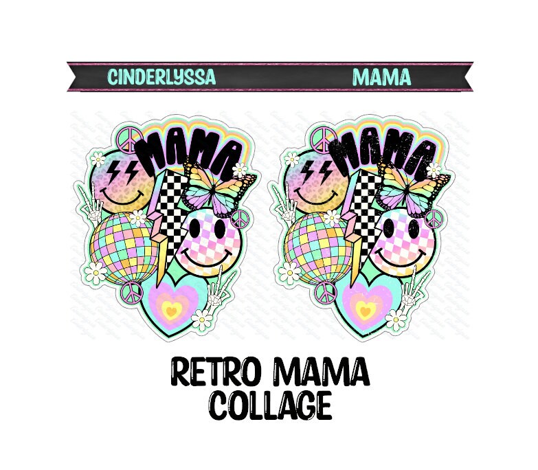 Retro Mama Collage: Disco Ball, Smiley Face, Lightning Bolt, hearts Cardstock Silicone Mold, Aroma Bead Molds, Premium Cardstock