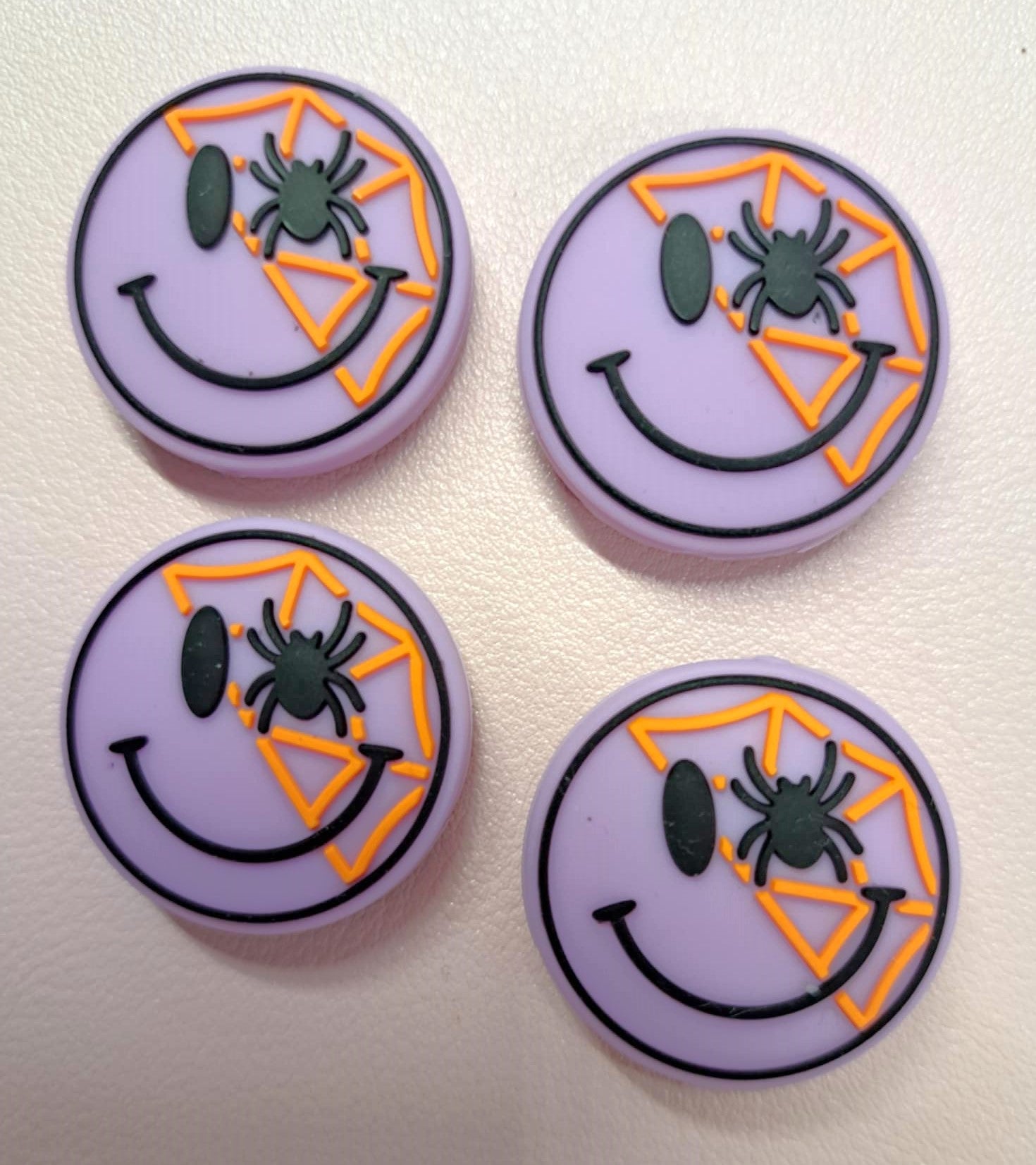 This listing is for: Smiley Face: Purple with Spider and Web Silicone Focal Bead