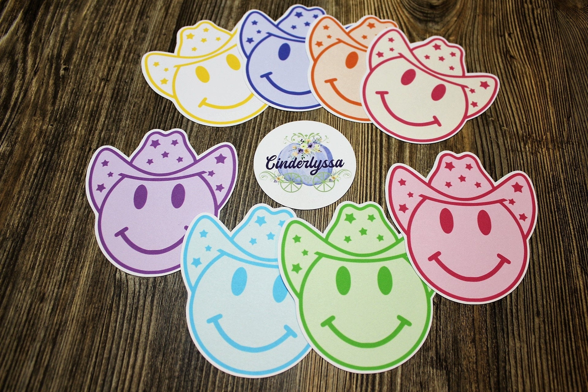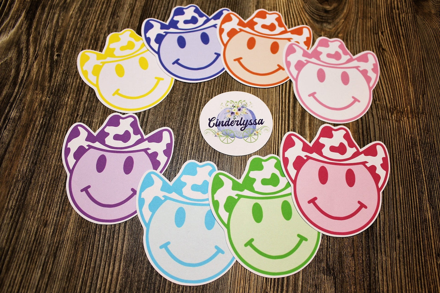 Smiley Face Cowboy Hat with Cow and Star Print, Disco Cowboy Multiple Colors Cardstock Silicone Mold, Aroma Bead Molds