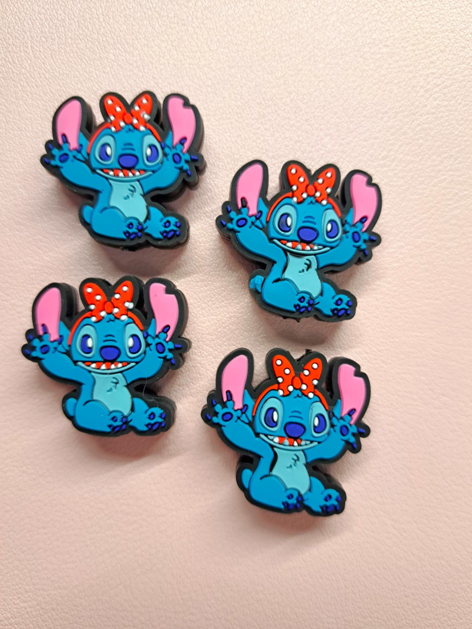 This listing is for: Stitch/Blue Alien with Red/White Polka Dot Hair Bow Full Body Silicone Focal Bead